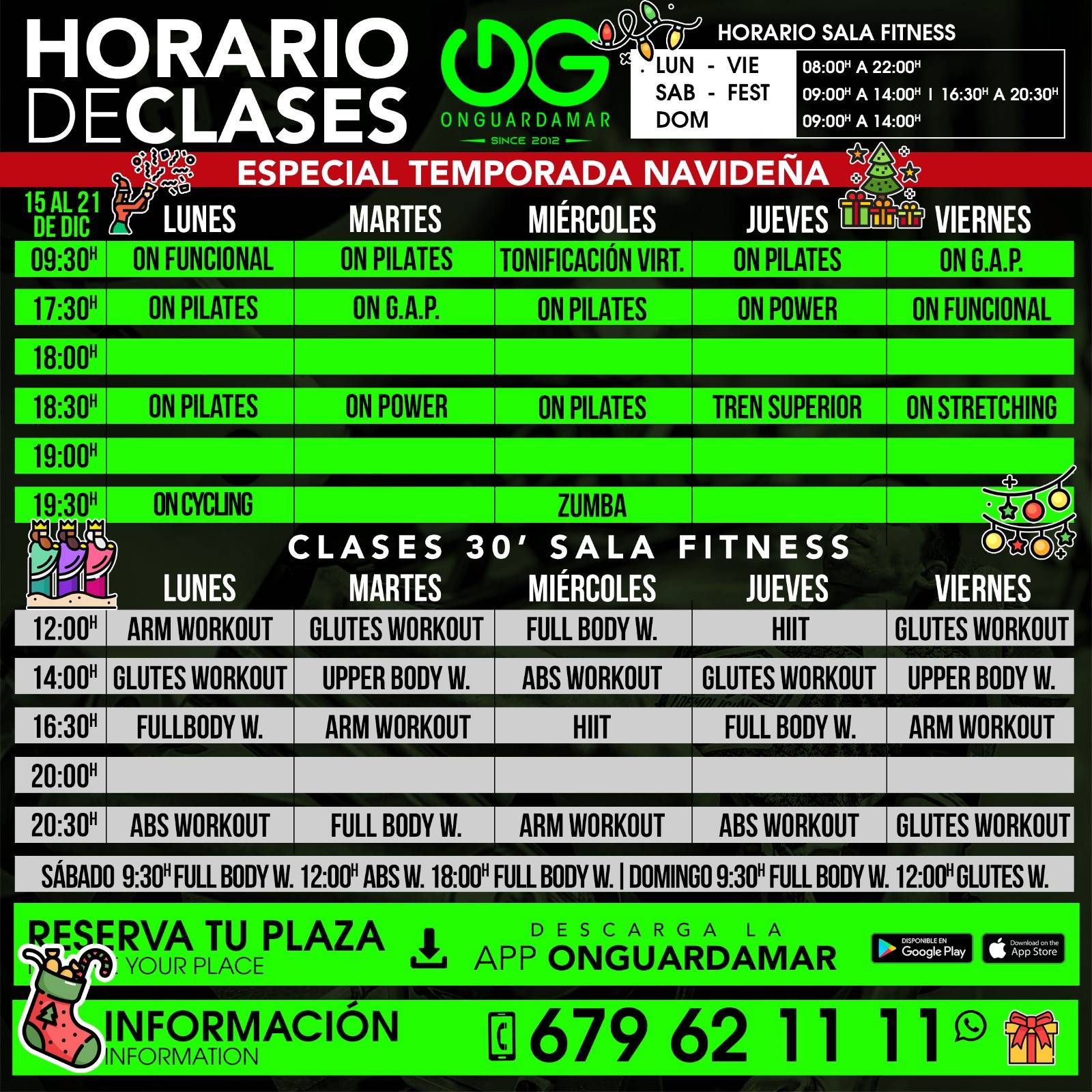 HORARIO DE ACTIVIDADES COLECTIVAS SEMANA DEL 15 AL 21 DE DICIEMBRE 2025